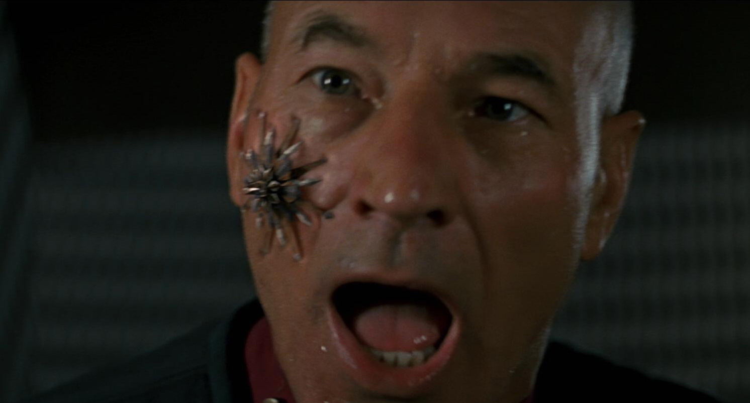 Scorpion part 1 and 2 were the cliffhanger episodes between Seasons 3 and 4, detailing Voyager’s navigation through Borg space and the introduction of Species 8972. I still remember watching this episode as a kid and gasping as I watched two Borg Cubes disintegrate before my eyes during the opening moments of the episode. The Borg are the biggest and baddest villain in the Star Trek universe, a single cube is capable of wiping out entire fleets of ship and assimilating millions of people. Voyager took the Borg and dialed them right up to 11 by suddenly throwing dozens of cubes at us, and then showing us a species that destroy them with as much ease as swatting a fly. The away mission to the destroyed cube is one of the most intense and atmospheric scenes I’ve ever seen in Star Trek, slowly creeping through a devastated ship with dead Borg littering the hallways. Then we get some pretty impressive CGI as the enormous 8972 bursts through a god damn wall and practically slices Harry Kim in half. Okay, maybe not in half, but it was intense. Harry Kim’s near death experience heightens the sense of danger in the story, which is rather rare in a Star Trek episode, and reinforces the horrific nature of the alien menace by telling us that Harry is essentially being eaten alive by the alien cells that have invaded his body.