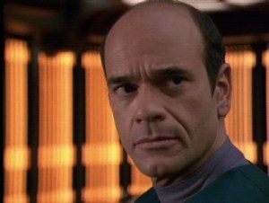 The Doctor was a character that actually experienced growth during Voyager’s early seasons. The first season sees The Doctor (hereby to referred to as Doc) being constantly ignored by the crew and confined to sickbay, a tiny section of the ship. At first he’s just a program and he becomes annoyed when crew members forget to turn off his program. More to the point however, he’s distrustful of the rest of Voyager’s crew and dismissive of their physical complaints. At one point he basically tells a pregnant woman suffering back pain to “suck it up” and get back to work.