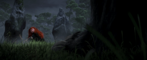 So after an admittedly hilarious escape from the castle, Merida and her mother travel into the woods to try and find the witch. This is where they desperately try to integrate the two stories by making Merida and her mother interact and learn about each other while they journey through the woods. Her mother begins to understand Merida’s attitude by watching her daughter survive in the wild and learning how to survive herself (albeit as a bear). Here’s the thing though: they could have had this scene without ever needing to have the mother turn into a bear. In fact these scenes could have been much more poignant had the mother actually been able to speak instead of just growl and mime. These scenes could easily have been an extension of Merida’s actions, her humiliation of the other clans sparks a conflict in the castle and Merida and her mother are forced to flee into the woods.