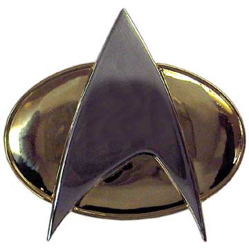 Then we moved onto smaller cellphones, classy and sophisticated. Of course then we got completely hands free devices, like the com badge here.