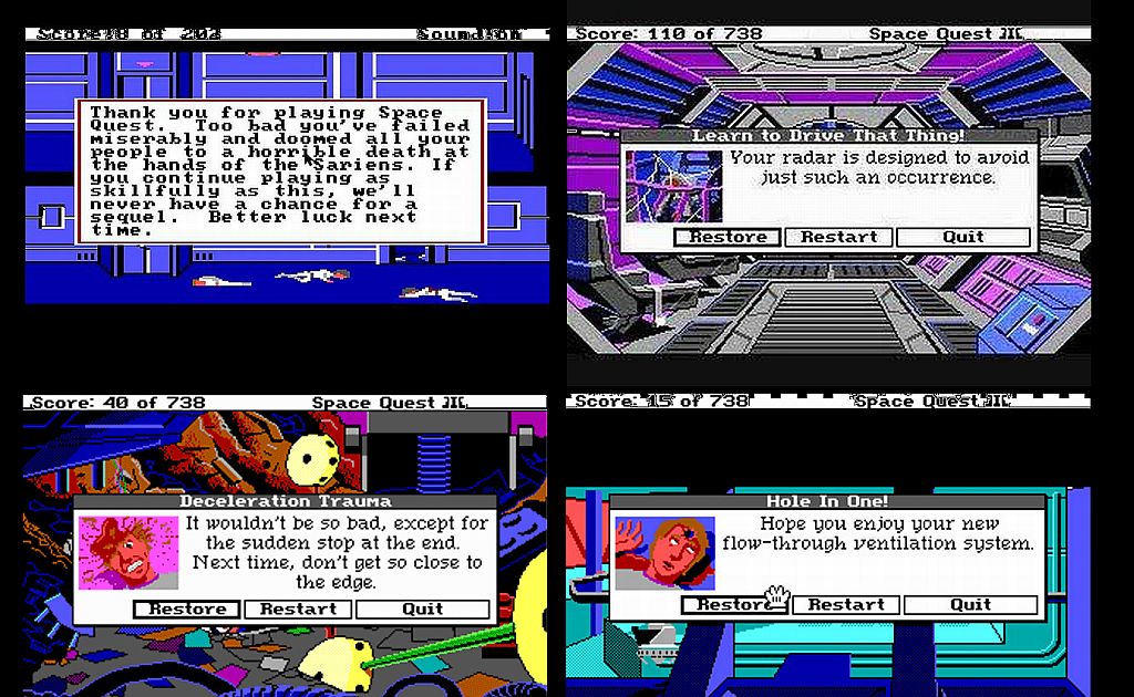 First of all I appreciate your response, I really do, that’s not sarcasm or anything. While I can see where you’re coming from, citing the “lose texts” as alternate endings is a bit disingenuous don’t you think? By that train of thought any game that has any kind of text message when you die technically has multiple endings, which would make Sierra Adventure Games of the 1990’s king of the alternate ending. I remember playing Space Quest when I was a kid, I used to get all kind of hilarious messages when I died.