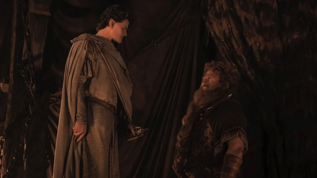 The exception to this is, of course, Durin and Elrond. The only points of brilliance I can see in this show comes from these two. Whether through a different writer working on their scenes, or the actors simply having outstanding chemistry and managing to make their scenes work despite the script, I love every time these two get on screen. Even when their having expositional dialogue, they’re interacting in a way that seems genuine. For instance in episode 5, Elrond tells Durin that the Elves need Mithril in order to survive, and that the lives of the Elves are in his hands: