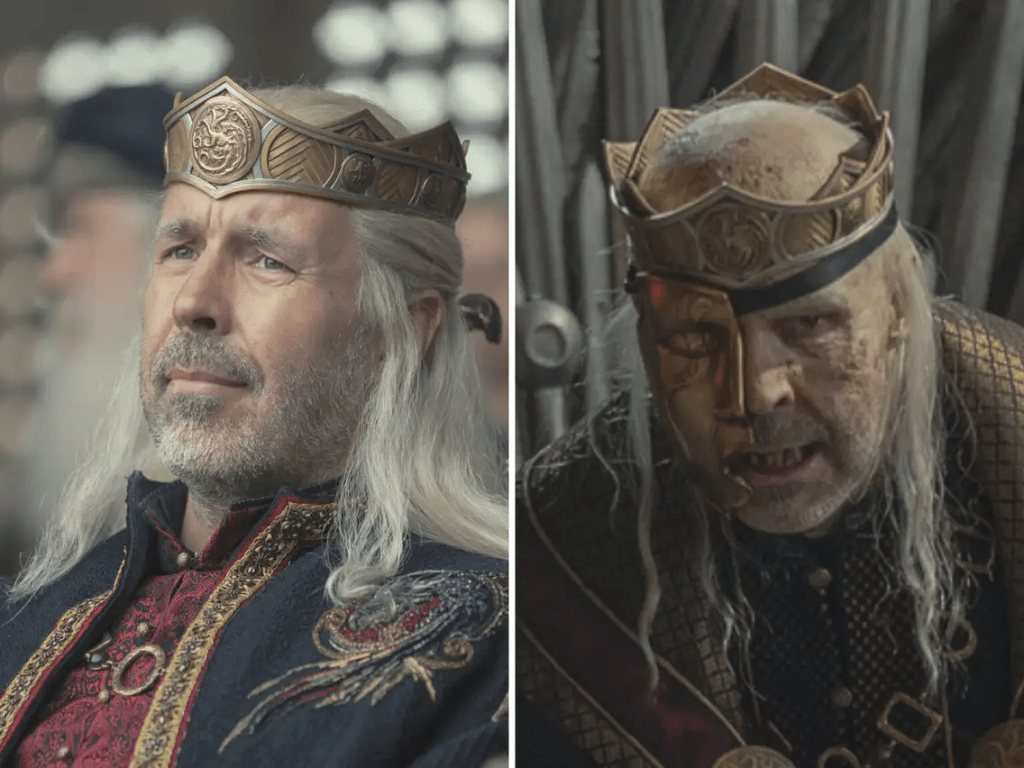 Seen through Rhaenyra’s eyes, Viserys does seem obsessed with having a son, and it does look like he’s desperate to find any excuse not to put his daughter on the throne. Up to and including putting Daemon, who would clearly be a mad king, on the throne rather than her. Yet what we first interpret as disdain for his daughter, and disgust for the idea of having a woman on the throne, is actually a deep sense of love and responsibility.