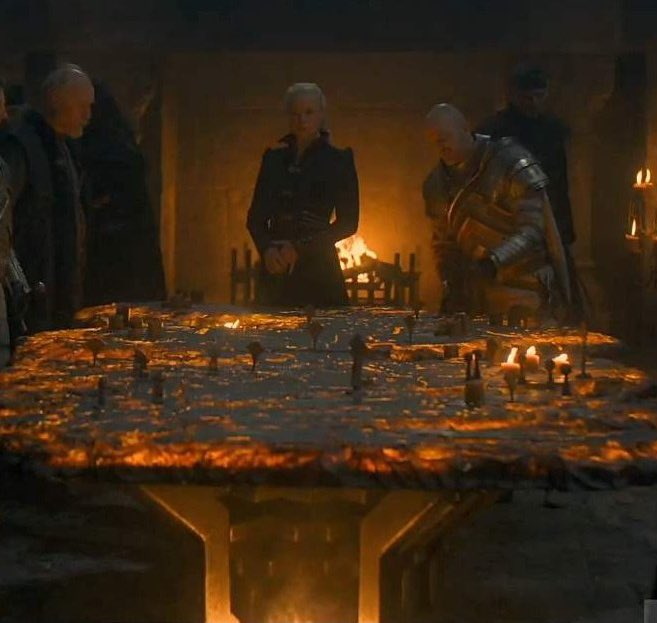 At the same time that Corlys is saying this he quickly unfurls of a map of Westeros, introducing what this world looks like to the audience. Already we’ve been introduced to the Triarchy and the Free Cities, though neither will be mentioned again until the following episode, but it’s been introduced. They’ve also laid the groundwork that there’s potential for conflict with this new Triarchy, and so when the war breaks out several episodes later, it doesn’t come as a surprise. We’re not left asking, “who the heck are these guys?”